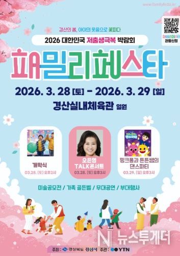 뉴스투게더 김인숙 기자 | 경산시는 가족친화적 사회 분위기를 조성하고 결혼·출산·양육에 대한 긍정적 인식을 확산하기 위해 28일과 29일 이틀간 경산 실내 체육관 일원에서 '2026 패밀리 페스타'를 개최한다.