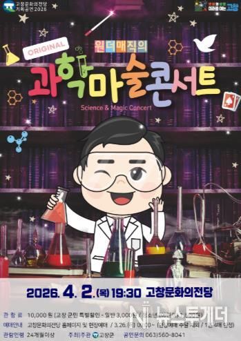 뉴스투게더 김인숙 기자 | 고창군에 따르면 고창문화의전당에서 마술쇼 ‘과학마술콘서트’ 공연이 오는 4월2일 저녁 7시30분에 진행된다.