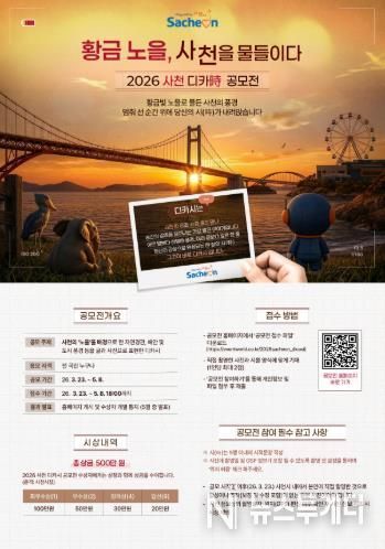 시 관계자는 “이번 공모전은 사천을 대표하는 ‘황금 노을’의 가치를 재조명하고, 전국의 감성을 사천으로 끌어들이는 계기가 될 것”이라며 “많은 국민들이 디카시를 통해 사천의 아름다움과 매력을 창의적으로 표현해 주길 기대한다”고 말했다.