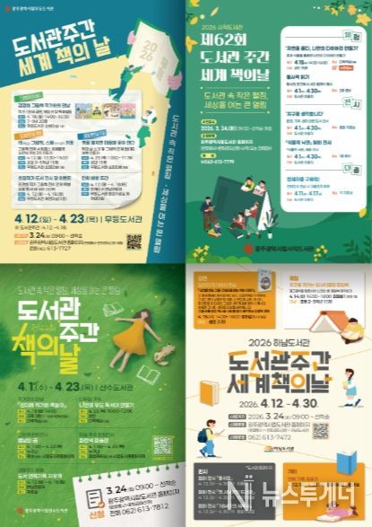 뉴스투게더 김인숙 기자 | 광주광역시 시립도서관(무등·사직·산수·하남)은 ‘도서관 주간’(4월 12∼18일)과 ‘세계 책의 날’(4월 23일)을 맞아 다양한 독서문화 행사를 마련, 3월 24일부터 참가 신청을 받는다.