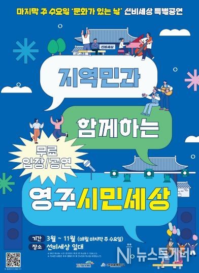또한, 이번 공연에는 지역에서 활발히 활동 중인 다양한 문화예술 단체가 참여할 예정이다. 오는 25일 ‘어쿠스틱’의 통기타 공연을 시작으로, 소리여행예술단, 영주선비관악봉사단 등 관내에서 활동 중인 다양한 문화예술단체가 참여해 통기타, 무용, 합창 등 다채로운 공연을 선보일 예정이다.