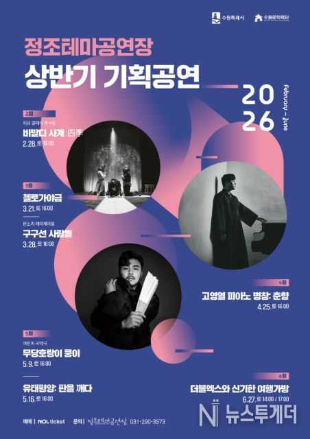 뉴스투게더 김인숙 기자 | 수원문화재단은 오는 4월부터 6월까지 정조테마공연장에서 전통예술의 현대적 확장을 주제로 한 기획공연 4편을 선보인다.