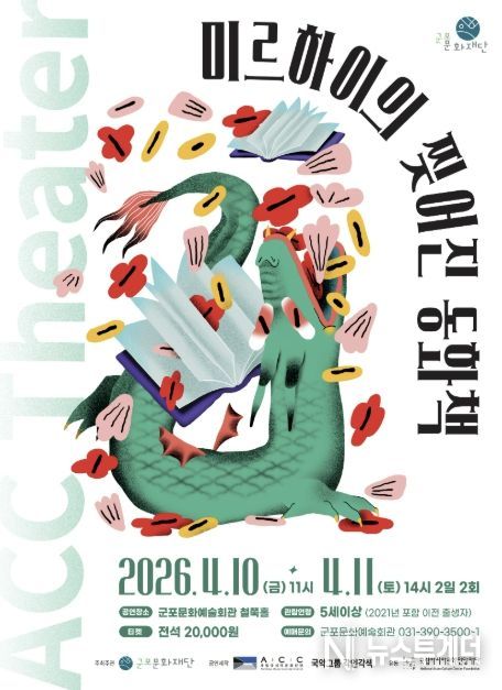 뉴스투게더 김인숙 기자 | 군포문화재단은 어린이와 가족이 함께 관람할 수 있는 공연 '미르하이의 찢어진 동화책'을 4월 10일~11일 군포문화예술회관 철쭉홀에서 개최한다고 밝혔다. 이번 공연은 2026 국립아시아문화전당재단 어린이 공연 유통 공모사업의 일환으로, 국립아시아문화전당(ACC) 창·제작 어린이 공연을 지역에 소개하기 위해 마련됐다.