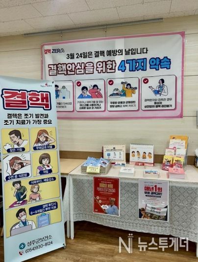 뉴스투게더 김인숙 기자 | 성주군은 ‘제16회 결핵 예방의 날(매년 3월 24일)’을 맞아 결핵에 대한 올바른 정보를 알리고 조기 검진 참여를 독려하기 위해 '결핵 예방 주간'을 운영한다고 밝혔다.