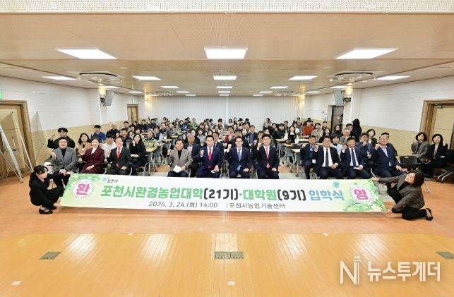 뉴스투게더 김인숙 기자 | 포천시는 지난 24일 포천시농업기술센터 대강당에서 신입생과 내빈 등 100여 명이 참석한 가운데 ‘2026학년도 포천시환경농업대학(22기) 및 대학원(9기) 입학식’을 개최했다.