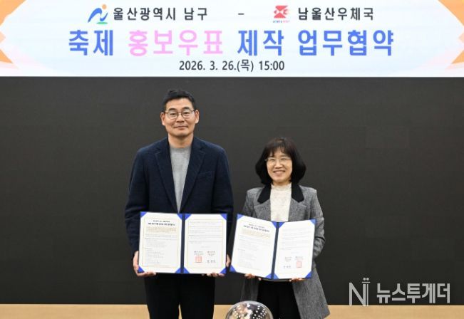 뉴스투게더 김인숙 기자 | 울산 남구는 26일 남구청 소회의실에서 남울산우체국과 울산고래축제와 장생포 수국페스티벌 홍보를 위한 ‘나만의 우표’제작 업무협약을 체결했다.