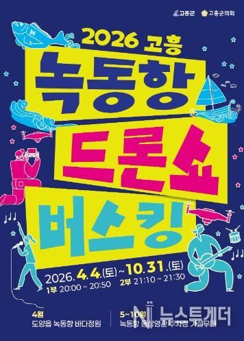 뉴스투게더 김인숙 기자 | 고흥군은 4월 4일부터 10월 31일까지 매주 토요일 저녁 8시, 녹동항 바다정원 일원에서 ‘2026 고흥 녹동항 드론쇼 버스킹’ 공연을 개최한다고 밝혔다.