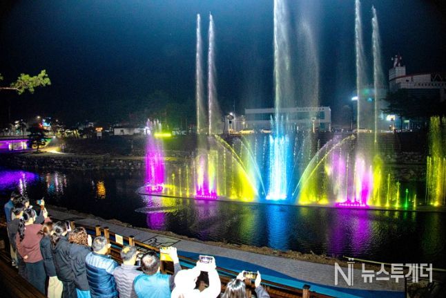 이날 개장한 음악분수는 음악에 맞춰 물줄기가 다양한 형태로 연출되고 야간에는 조명이 더해져 화려한 경관을 선보였다.
