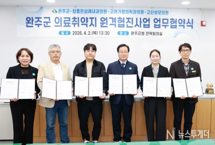 군은 2일 군청에서 참좋은삼례내과의원, 고려가정의학과의원, 고산성모의원 등 민간 의료기관 3개소와 ‘의료 취약지 원격 협진 시범 사업’ 추진을 위한 업무 협약을 체결했다.