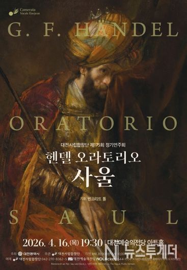 뉴스투게더 김인숙 기자 | 대전시립합창단은 4월 16일 오후 7시 30분 대전예술의전당 아트홀에서 제175회 정기연주회 헨델의 오라토리오 ‘사울’을 공연한다.