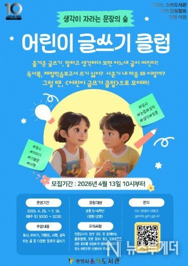 뉴스투게더 김인숙 기자 | 광명시 소하도서관은 어린이 글쓰기 클럽 ‘생각이 자라는 문장의 숲’ 수강생을 오는 13일부터 모집한다.