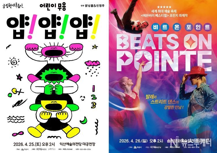 익산예술의전당은 오는 25일 국립현대무용단의 어린이 무용 '얍! 얍! 얍!'에 이어 26일 융복합 댄스 공연 '비트 온 포인트(Beats on Pointe)'를 선보인다.