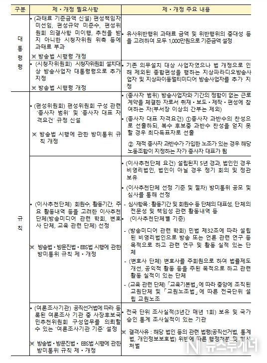 또한 방미통위 규칙 제․개정을 통해 편성위원회 구성과 관련된 종사자 범위 및 종사자 대표의 자격요건을 구체화했다.