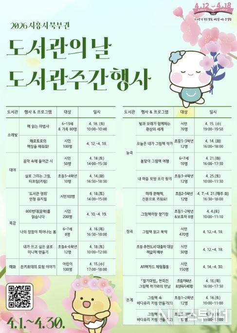 뉴스투게더 김인숙 기자 | 시흥시 북부권 공공도서관은 4월 12일 ‘도서관의 날’과 4월 12일부터 18일까지 이어지는 ‘도서관주간’을 기념해 다양한 독서문화 행사와 현장 참여 이벤트를 4월 한 달간 운영한다.
