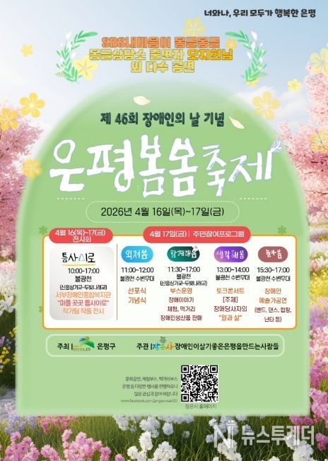 뉴스투게더 김인숙 기자 | 서울 은평구는 오는 16일부터 17일까지 불광천 일대에서 제46회 장애인의 날 기념 ‘은평봄봄축제’를 개최한다고 밝혔다.