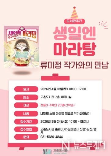 뉴스투게더 김인숙 기자 | 김포시 고촌도서관은 4월 18일 오전 10시에 초등학생 3~4학년을 대상으로 '오늘은 내가 마라탕 책 요리사'를 운영한다.