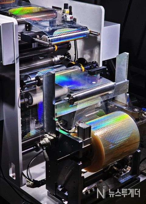 기존에는 딱딱한 니켈 금형을 사용하여 메타렌즈를 하나씩 제작했으나, 연구팀은 유연한 소재의 고분자 복제 금형을 12인치 면적의 원통형 롤러로 만들었다. 이를 통해 롤러를 회전시켜 마치 신문을 인쇄하듯 렌즈를 연속적으로 인쇄할 수 있도록 공정을 구현하는 데 성공했다. 특히 고분자 복제 금형의 내구성과 해상도를 극대화하기 위해 특수 개발한 표면처리 기술을 도입하여, 200m 길이의 연속 공정에서도 첫 번째 제작 렌즈와 마지막 제작 렌즈의 성능 편차가 없는 수준까지 대량 생산의 신뢰성을 끌어올렸다.