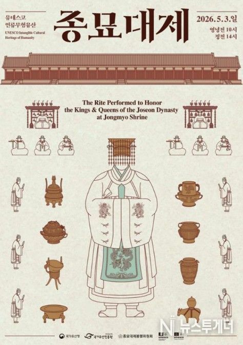 뉴스투게더 윤종우 기자 | 국가유산청은 산하 국가유산진흥원, 종묘대제봉행위원회와 5월 3일 오후 2시 종묘(서울 종로구)에서 '2026년 종묘대제'를 봉행한다.