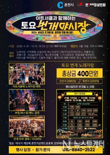시 관계자는 “번개야시장은 시민 일상 속 야간 여가 공간이자 지역 상권을 살리는 실질적인 소비 거점”이라며 “앞으로도 다양한 콘텐츠를 더해 춘천을 대표하는 야간 명소로 키워나가겠다”고 말했다.