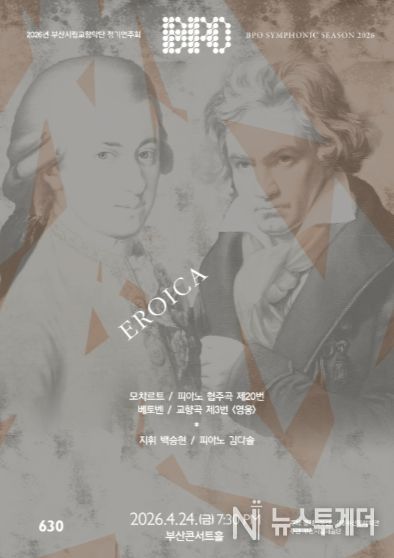 뉴스투게더 김인숙 기자 | 부산시립교향악단이 오는 4월 24일 오후 7시 30분, 부산콘서트홀에서 제630회 정기연주회 '에로이카(EROICA)'를 개최한다. 이번 공연은 고전주의의 균형에서 출발해 낭만주의의 확장으로 나아가는 흐름 속에서, 불안과 긴장을 넘어서는 인간의 의지를 조명하는 무대로 마련된다.