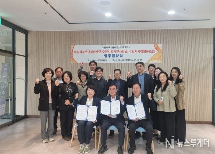 뉴스투게더 김인숙 기자 | 수원시 도서관사업소와 수원시청소년청년재단, 수원시서점협동조합이 지역 독서문화 활성화와 시민 독서활동 증진을 위해 협력하기로 했다.