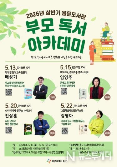 뉴스투게더 김인숙 기자 | 대전 동구는 자녀교육에 관심 있는 부모를 대상으로 전문가 초청 강연 프로그램인 2026년 상반기 ‘부모 독서 아카데미’를 운영한다고 17일 밝혔다.