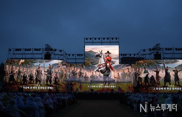 영상에서는 곽재우 장군을 비롯한 17장령 전원이 대형 스크린에 구현됐으며, 강가를 배경으로 한 전투 장면이 펼쳐지며 마치 전장 한가운데에 들어온 듯한 몰입감을 선사했다. 불길과 연기가 피어오르는 가운데 의병장들이 결연한 표정으로 전장을 바라보는 모습은 긴박한 상황을 생생하게 전달했다.