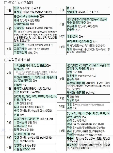 벼는 지난해 4개 시·군을 대상으로 운영했고, 올해 16개 시·군에 신규 도입하여 총 20개 시·군에서 확대 운영된다. 아울러, 봄배추·봄무는 평창 등 주산지 중심으로 시범 운영에 착수하는 한편, 봄감자·고구마·옥수수는 전국으로 확대하여 운영한다.