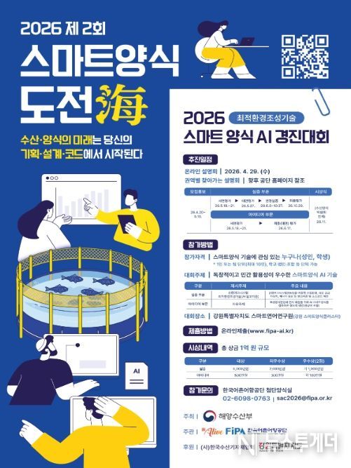 뉴스투게더 김성연 기자 | 해양수산부와 한국어촌어항공단(이사장 홍종욱)은 4월 20일부터 5월 15일까지 ‘제2회 스마트양식 도전해(海) 경진대회’의 공모를 실시한다고 밝혔다.