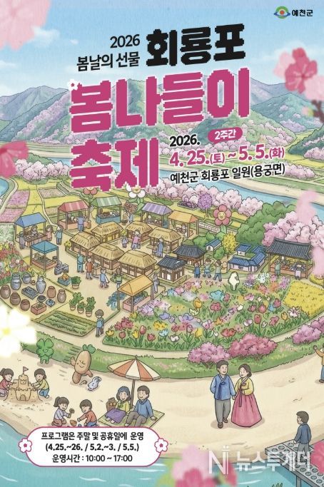 뉴스투게더 김인숙 기자 | 예천군은 오는 4월 25일부터 5월 5일까지 용궁면 회룡포 일원에서 '2026 회룡포 봄나들이 축제'를 개최한다.