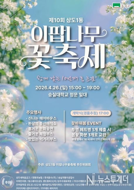 뉴스투게더 김인숙 기자 | 동작구는 오는 26일 숭실대학교 정문 일대(상도로 369)에서 ‘제10회 이팝나무 꽃 축제’를 개최한다고 밝혔다.
