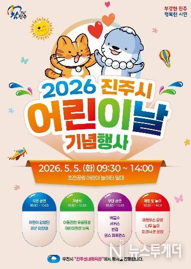 뉴스투게더 김인숙 기자 | 진주시는 제104회 어린이날을 맞아 5월 5일 초전공원 어린이 놀이터 일원에서‘2026년 어린이날 기념행사’를 개최한다.