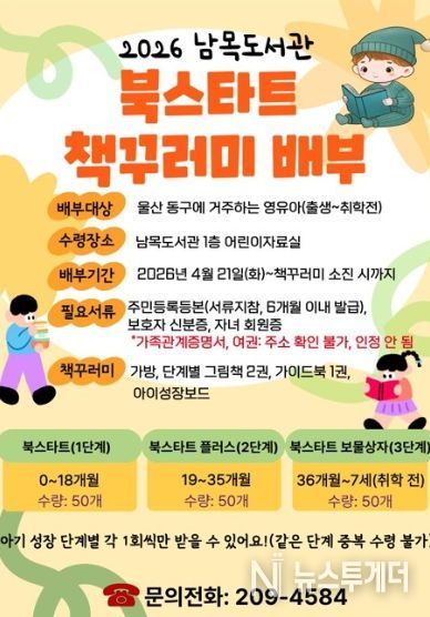 뉴스투게더 김인숙 기자 | 울산 동구 남목도서관은 4월 21일부터 동구 관내에 거주하는 영유아를 대상으로 책 꾸러미를 선물하는 ‘2026 북스타트 사업’을 추진한다.