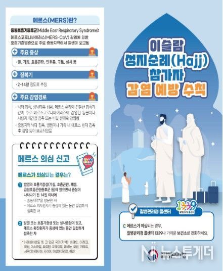 뉴스투게더 김인숙 기자 | 질병관리청은 이슬람 성지순례(하지, Hajj, 2026년 5월 25일~5월 30일 변동 가능) 시기를 맞아 사우디아라비아 방문객들에게 중동호흡기증후군(Middle East Respiratory Syndrome, 메르스) 및 수막구균 감염증(Meningococcal disease)을 주의할 것을 당부했다.