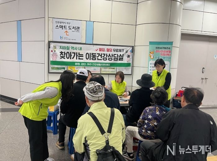 뉴스투게더 김인숙 기자 | 인천 서구 검단권역(완정ˑ검단ˑ아라) 건강생활지원센터는 지난 17일 인천지하철 2호선 검단사거리역에서 지역 주민을 대상으로 찾아가는 이동건강삼담실은 운영했다고 밝혔다.