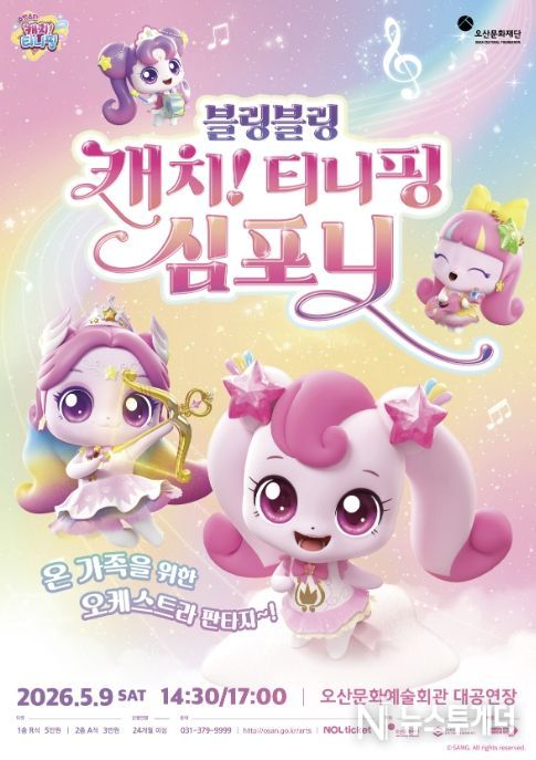 뉴스투게더 김인숙 기자 | 오산문화재단은 어린이날을 맞아 온 가족이 함께 즐길 수 있는 오케스트라 공연 ‘블링블링 캐치! 티니핑 심포니’를 선보인다고 밝혔다. 이번 공연은 인기 애니메이션 ‘캐치! 티니핑’ 시리즈의 OST를 오케스트라 라이브로 감상할 수 있는 무대로, 어린이뿐 아니라 가족 단위 관람객들에게 특별한 문화 경험을 제공할 예정이다.