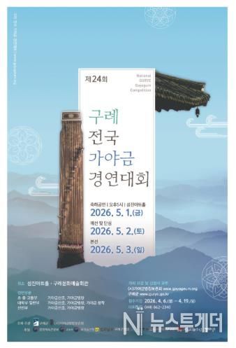 뉴스투게더 김인숙 기자 | 전남 구례군이 주최하고 (사)가야금병창보존회가 주관하는 ‘제24회 구례 전국 가야금 경연대회’가 오는 5월 2일부터 3일까지 이틀간 열린다.