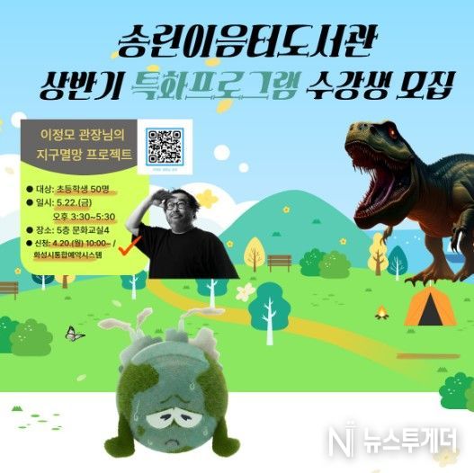 해당 특강 수강생 모집은 4월 20일 10시부터 화성시통합예약시스템(검색어: “지구멸망”)으로 이뤄지며, 대상은 초등학생이며 수강생의 정보로 입력해야 접수할 수 있다.