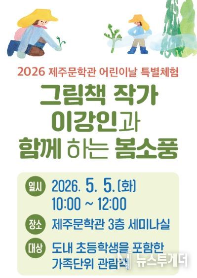 뉴스투게더 김인숙 기자 | 제주특별자치도 제주문학관은 오는 5월 5일 어린이날을 맞아 가족 단위 관람객을 위한 특별 체험 프로그램 ‘이강인 작가와 함께하는 봄소풍’을 운영한다.