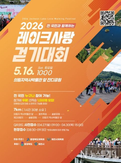 뉴스투게더 김인숙 기자 | 제천시체육회는 오는 5월 16일 의림지 일원에서 '2026 레이크사랑 걷기대회'를 개최한다고 밝혔다.