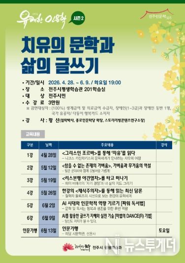 뉴스투게더 김인숙 기자 | 전주시가 시민들이 인문학을 통해 행복한 삶의 지혜를 배울 수 있도록 생활 속 인문학 프로그램을 운영한다.