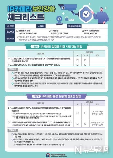 뉴스투게더 김인숙 기자 | 개인정보보호위원회는 지난해 12월 관계부처 합동으로 발표한 'IP카메라 보안 관리체계 고도화 방안'의 후속 조치로 관계부처, 지자체, 주요 직능단체 등과 함께 ‘IP카메라 보안 강화를 위한 민관협력 캠페인’을 추진한다.