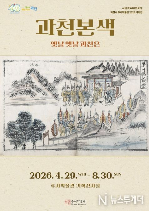 뉴스투게더 김인숙 기자 | 과천시 추사박물관은 시 승격 40주년을 기념하여 ‘2026 테마전 '과천본색–옛날 옛날 과천은'’을 개최한다고 밝혔다. 이번 전시는 4월 29일 오후 3시 개막식을 시작으로 8월 30일까지 추사박물관 기획전시실에서 진행된다.