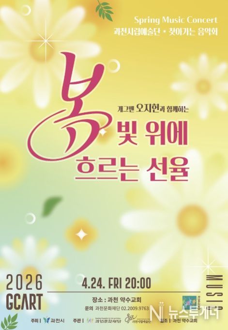 뉴스투게더 김인숙 기자 | 과천시는 오는 24일 오후 8시, 과천 약수교회에서 시민들을 위한 특별한 문화 공연 ‘봄빛 위에 흐르는 선율’을 개최한다.