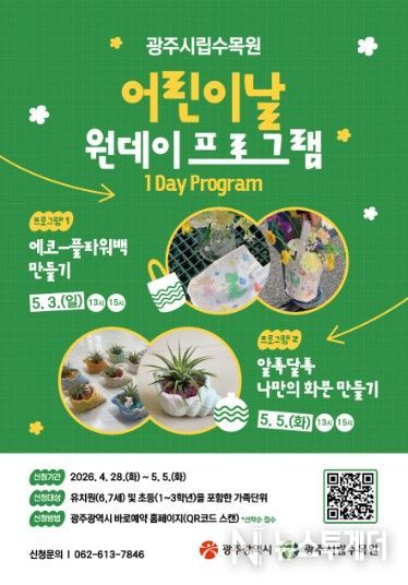 김희석 수목원·정원사업소장은 “어린이날을 맞아 아이들이 자연 속에서 즐겁게 식물과 친해질 수 있도록 프로그램을 준비했다”며 “가족이 함께 체험활동을 하며 의미 있는 시간을 보내길 바란다”고 말했다.