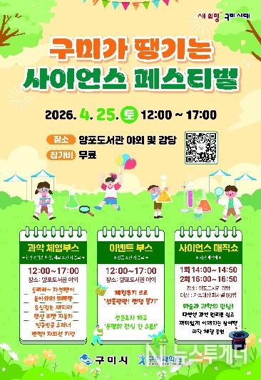 이선임 구미과학관장은 “과학을 어렵게 느끼기보다 일상 속에서 즐길 수 있는 계기가 되길 바란다”며 “어린이들이 체험을 통해 자연스럽게 과학적 사고력과 창의력을 키우는 시간이 될 것으로 기대한다”고 밝혔다.
