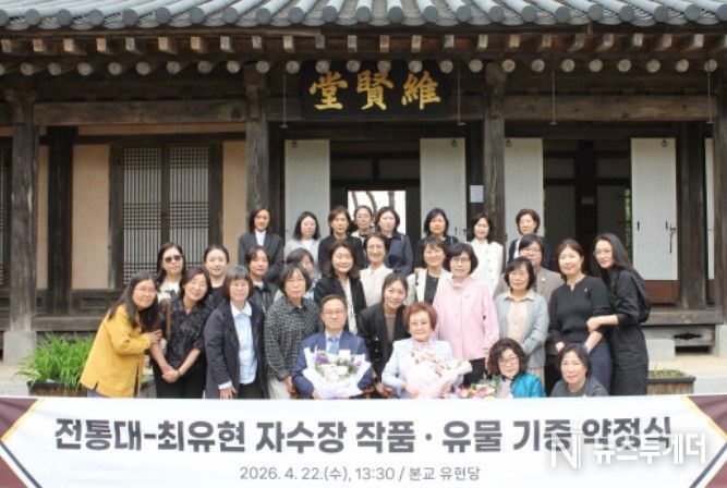 뉴스투게더 윤종우 기자 | 국가유산청 한국전통문화대학교는 4월 22일 오후 1시 30분 교내 유현당(충남 부여군)에서 전통 자수와 공예 교육·연구 활성화를 위해 국가무형유산 최유현 자수장 보유자로부터 직접 제작한 자수 작품 124건과 도자기·민속품 등 소장 유물 1,185건을 기증받는 약정식을 개최했다.