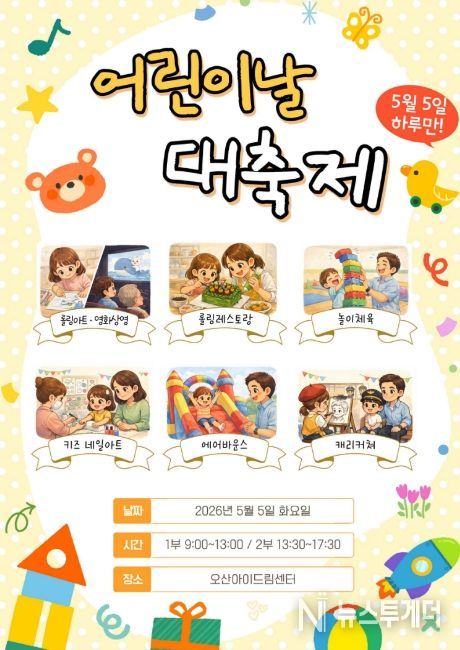 뉴스투게더 김인숙 기자 | 오산시가 운영하는 오산아이드림센터가 어린이날을 맞아 온 가족이 함께 즐길 수 있는 특별 체험행사를 마련한다.
