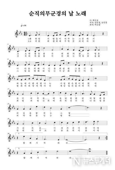 끝으로, 제1회 정부 기념행사를 개최하며 제작한 기념곡 ‘순직의무군경의 날 노래’를 가수 라포엠과 대학생연합합창단의 선도로 참석자 모두가 제창하며 기념식이 마무리된다.