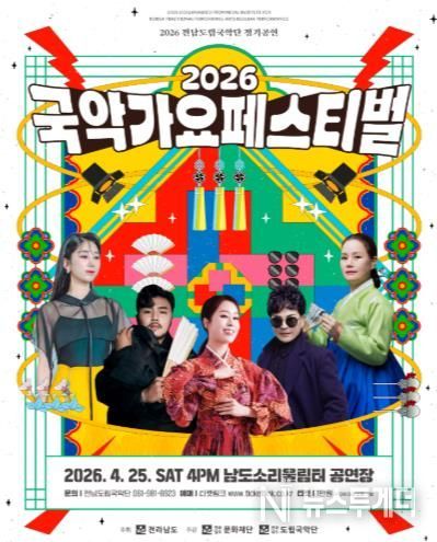 뉴스투게더 김인숙 기자 | 전남도립국악단은 25일 오후 4시 무안 남도소리울림터 공연장에서 2026년 정기공연 ‘국악가요 페스티벌’을 개최한다.